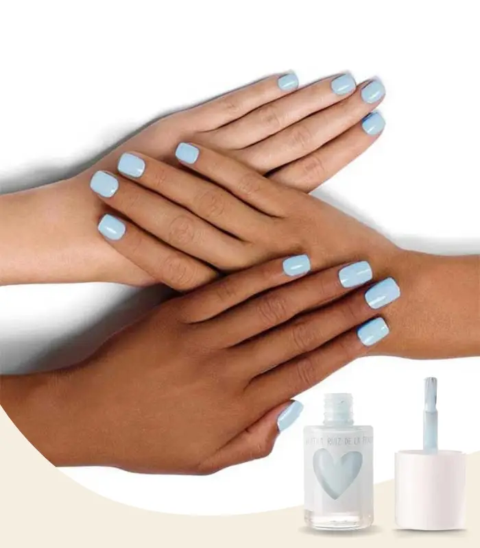 يمنح أظافرك لون أزرق فاتح هادئ ولمعان طويل الأمد.