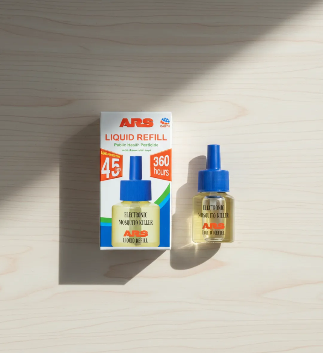 احصلي على عبوة غيار سائل قاتل الناموس ارس بحماية تدوم 360 ساعة. تركيبة يابانية امنة بدون رائحة او دخان، تضمن لعائلتك نوما هادئا وبيئة صحية خالية من البعوض.