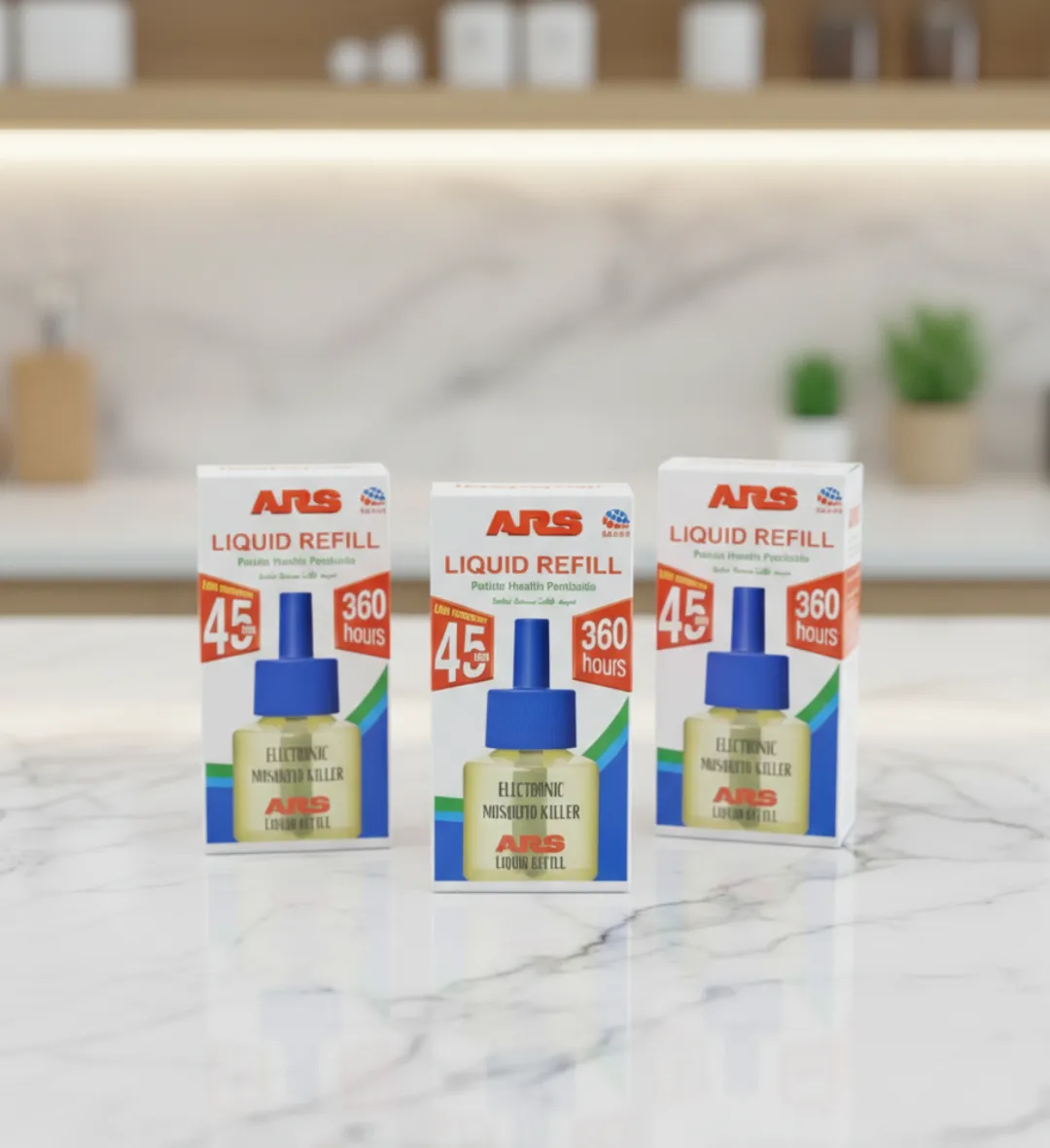 تعتبر عبوة غيار سائل قاتل الناموس ارس (ARS Liquid Refill) بفاعلية 360 ساعة الحل المثالي والاقتصادي لتأمين منزلك من الحشرات الطائرة المزعجة. صمم هذا المنتج بتقنية يابانية متطورة ليوفر حماية مستمرة وفعالة تصل الى 45 يوما (عند الاستخدام لمدة 8 ساعات يوميا)، مما يضمن لك ولعائلتك بيئة هادئة ونظيفة دون الحاجة لاستخدام بخاخات الرش التقليدية ذات الروائح القوية.