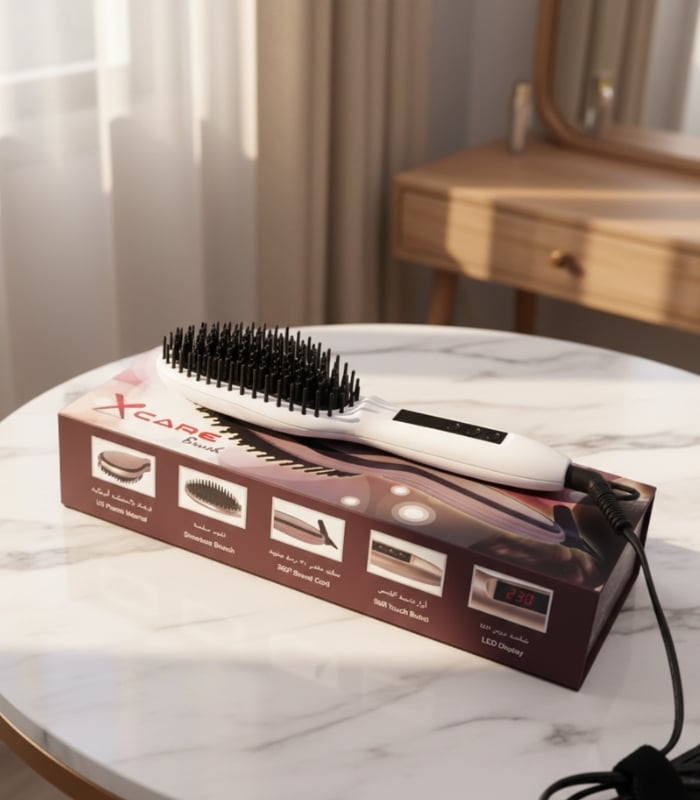 فرشاة الشعر الحرارية إكس كير X CARE تجمع بين التكنولوجيا الحديثة والتصميم الذكي لتجعل تصفيف الشعر تجربة مريحة وسريعة.