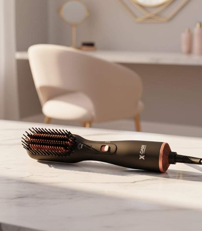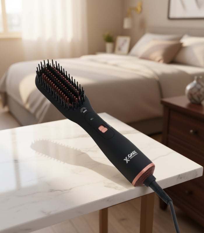 مشط شعر حراري من إكس كير FP2270، يجمع بين تقنية الأيونات والتسخين السريع ليوفر لكِ شعرًا أملسًا ولامعًا بسهولة.