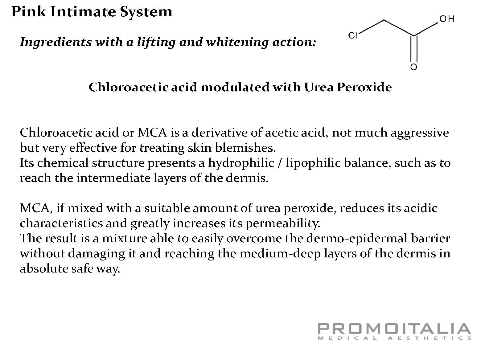 - حمض الكلورواستيك (MCA): يعمل على تقشير البشرة بلطف وتحفيز تجديد الخلايا.