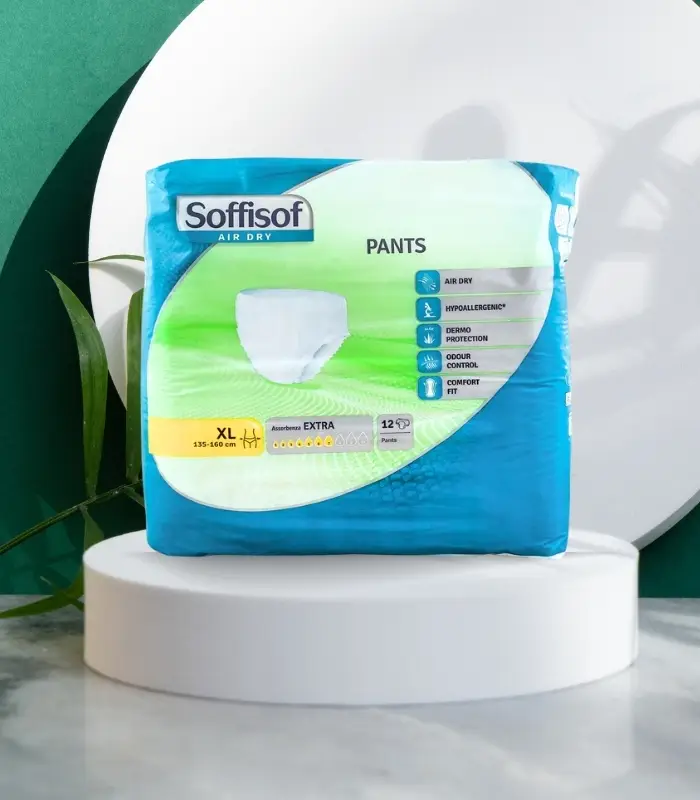 XL-سوفي سوف حفائض كيلوت بالمقاس – SOFFISOF ADULT DIAPERS SIZE-M، تعتبر حفاضات لكبار السن هذه على شكل كيلوت، وهي مُصممة للاستخدام من قبل الجنسين. تُصنع من مادة ناعمة تسمح بتنفس البشرة، وتأتي مع حزام خصر متكامل ومرن. تم تصميم حفائض Soffisof لتوفير حماية فعالة من التسريبات، وهي مناسبة بشكل مثالي لكبار السن وذوي الاحتياجات.