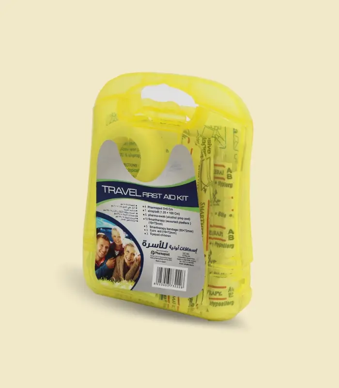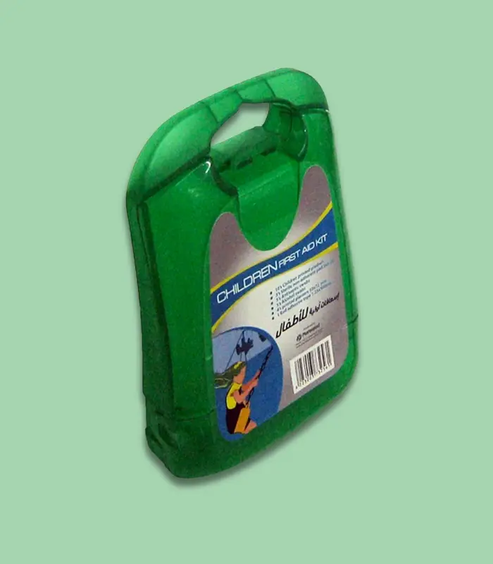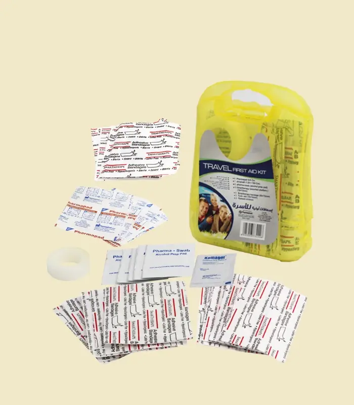 4 ضمادات 5×5 سم + 1 بكر طبي لاصق 1,35× 100 سم + 5 ماسحه كحولية + 10 ضمادة مختلفة الأشكال والألوان 19×72 ملم + 5 ضمادات لاصقة 50×72 ملم + 3 ضمادة لاصقة 19× 72 ملم + 3 ضمادة للعين للصغار