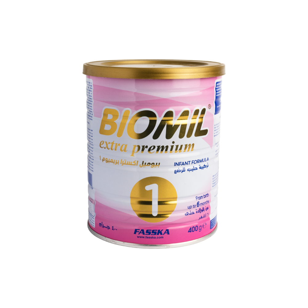 حليب الأطفال بيوميل إكسترا بريميوم 1 – 400 جرام تركيبة فرنسية متطورة للرضع من الولادة حتى 6 أشهر. غني بالفيتامينات والمعادن وDHA & ARA لدعم النمو العقلي والجسدي، وتقوية المناعة والهضم.