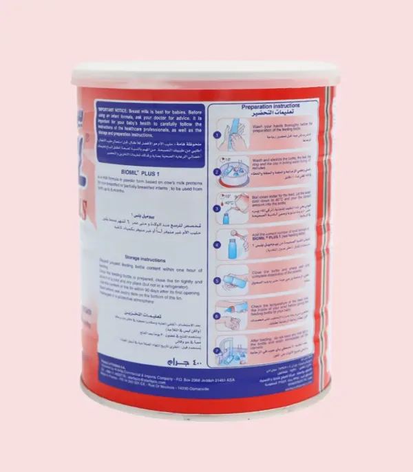 حليب الأطفال بيوميل بلس 1 – 800 جرام للرضع من الولادة حتى 6 أشهر، تركيبة فرنسية متوازنة لدعم النمو والمناعة والهضم بجودة موثوقة.