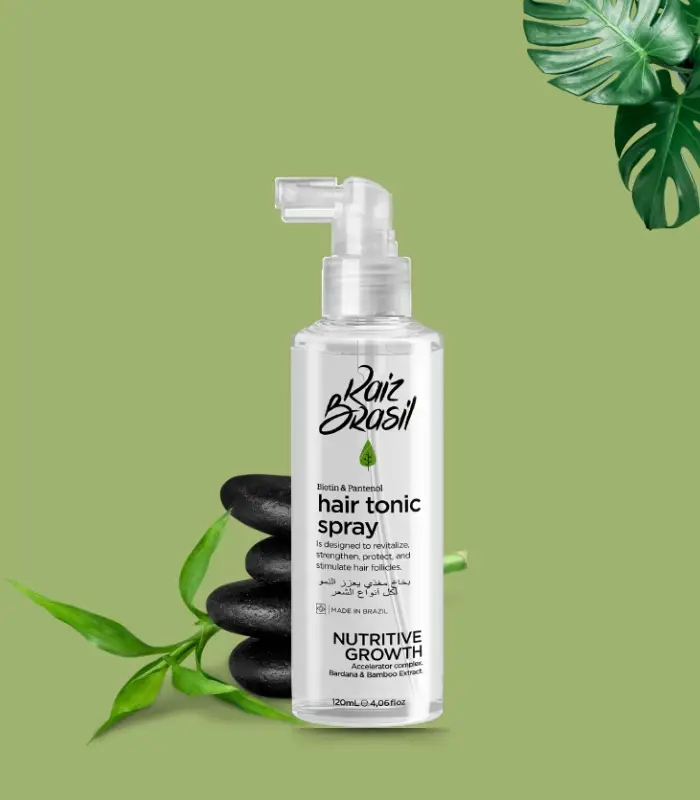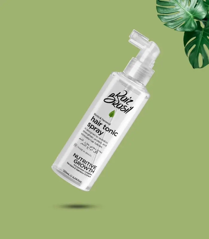 Raiz Brasil Hair Growth Spray – 120ml is a professional hair care solution designed to combat hair loss, strengthen weak follicles, and stimulate natural hair growth. Inspired by advanced Brazilian hair care technology, this tonic spray nourishes both the scalp and hair strands to restore vitality, thickness, and shine.