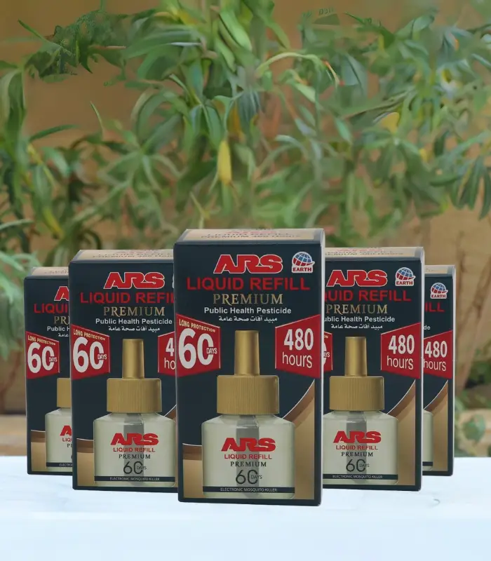 سائل آرس بريميوم – حماية منزلية فعّالة وطويلة الأمد ضد الناموس المقاوم للمبيدات، مناسب لجميع أجهزة آرس، يوفر 480 ساعة من الحماية المتواصلة.