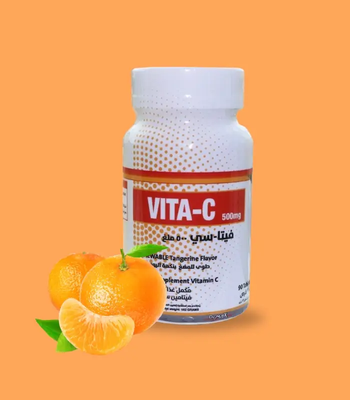 الوصف: VITA C CHEWABLE هو فيتامين C مضغ يقدم 500 ملغ من فيتامين C في كل حبة. تم تصميمه لتحقيق فوائد الفيتامين C، وهو مكمل غذائي مثالي للأفراد فوق سن 6 سنوات.