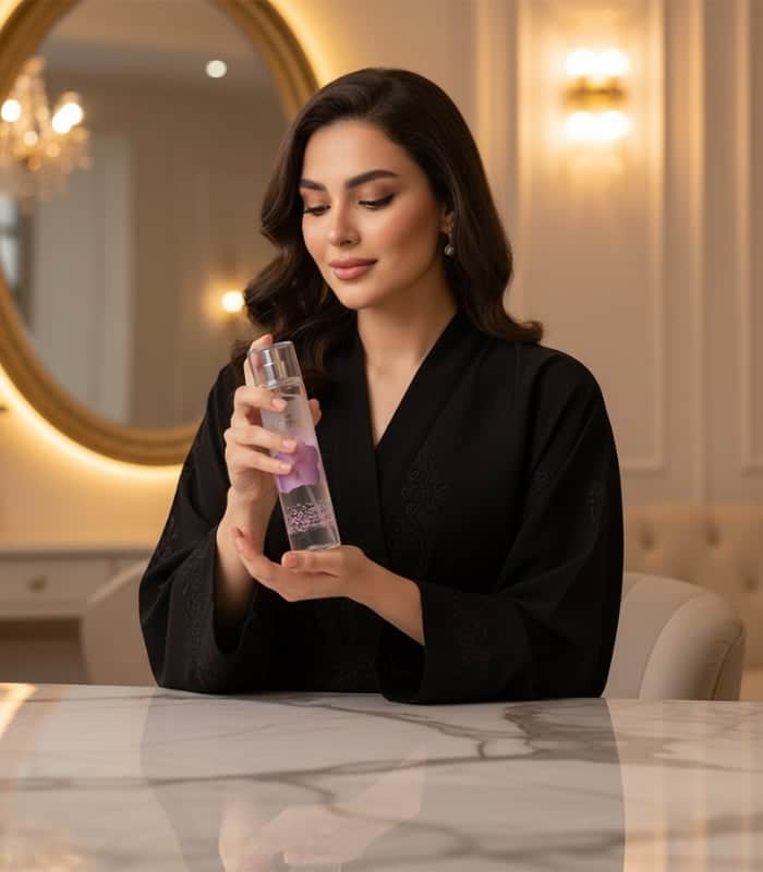 رش على الرقبة والمعصمين والصدر بعد الاستحمام