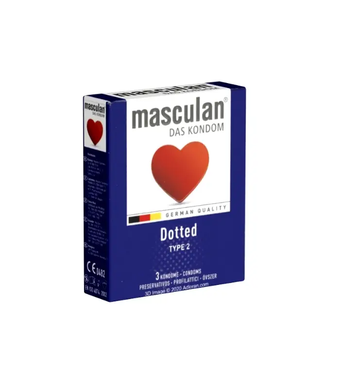 ماسكولان تايب 2 – عازل طبي محبب للإثارة، تصميم رقيق وملمس محبب يزيد المتعة للطرفين، عبوة 3 حبات آمنة ومعتمدة.