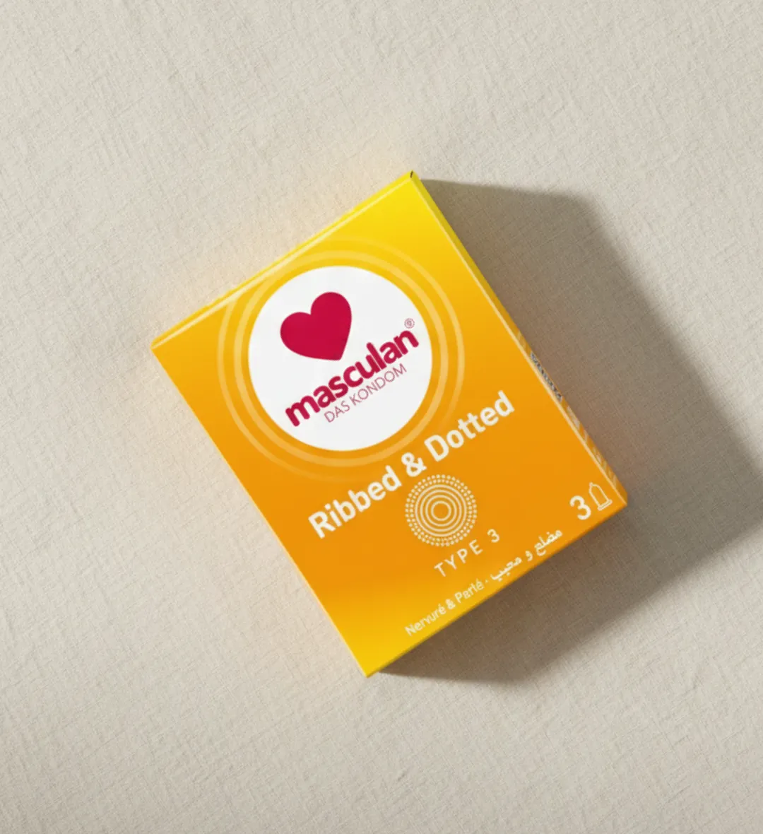 عازل طبي بتصميم مضلع ونقاط محببة من ماسكولان يوفر تجربة فريدة مع حماية كاملة. منتج ألماني معتمد طبياً يضمن الجودة العالية والراحة التامة بلمسة عصرية للعناية الشخصية الراقية.
