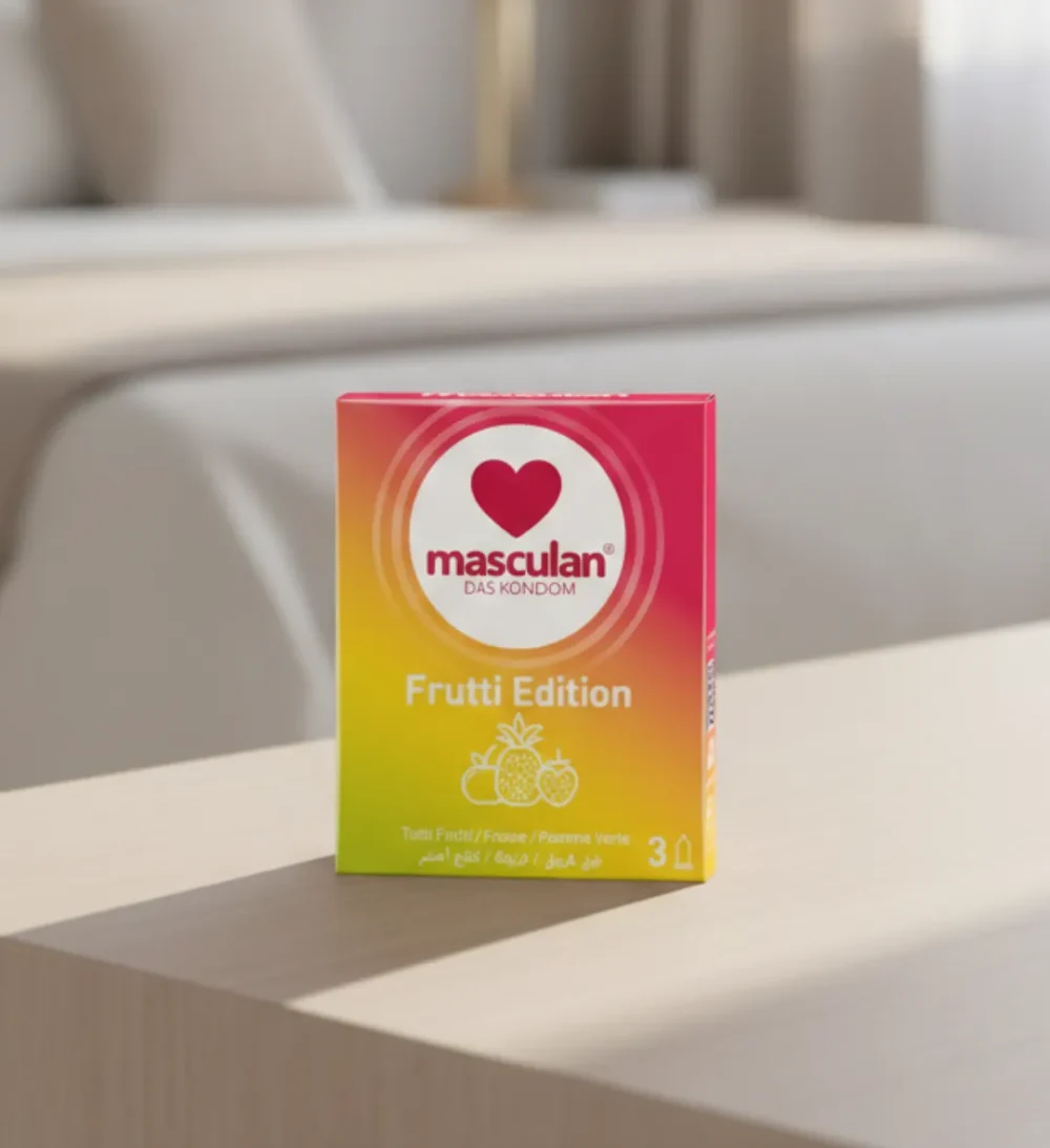 ماسكولان فروت واقي ذكري بنكهة الفواكه – علبة 3 حبات، منتج ألماني عالي الجودة مصمم خصيصًا لتعزيز الحماية والأمان مع إضافة لمسة ممتعة من النكهات. تم تصنيع الواقي من مواد طبية آمنة ومعتمدة من هيئة الغذاء والدواء، ليمنحك ثقة تامة أثناء الاستخدام.