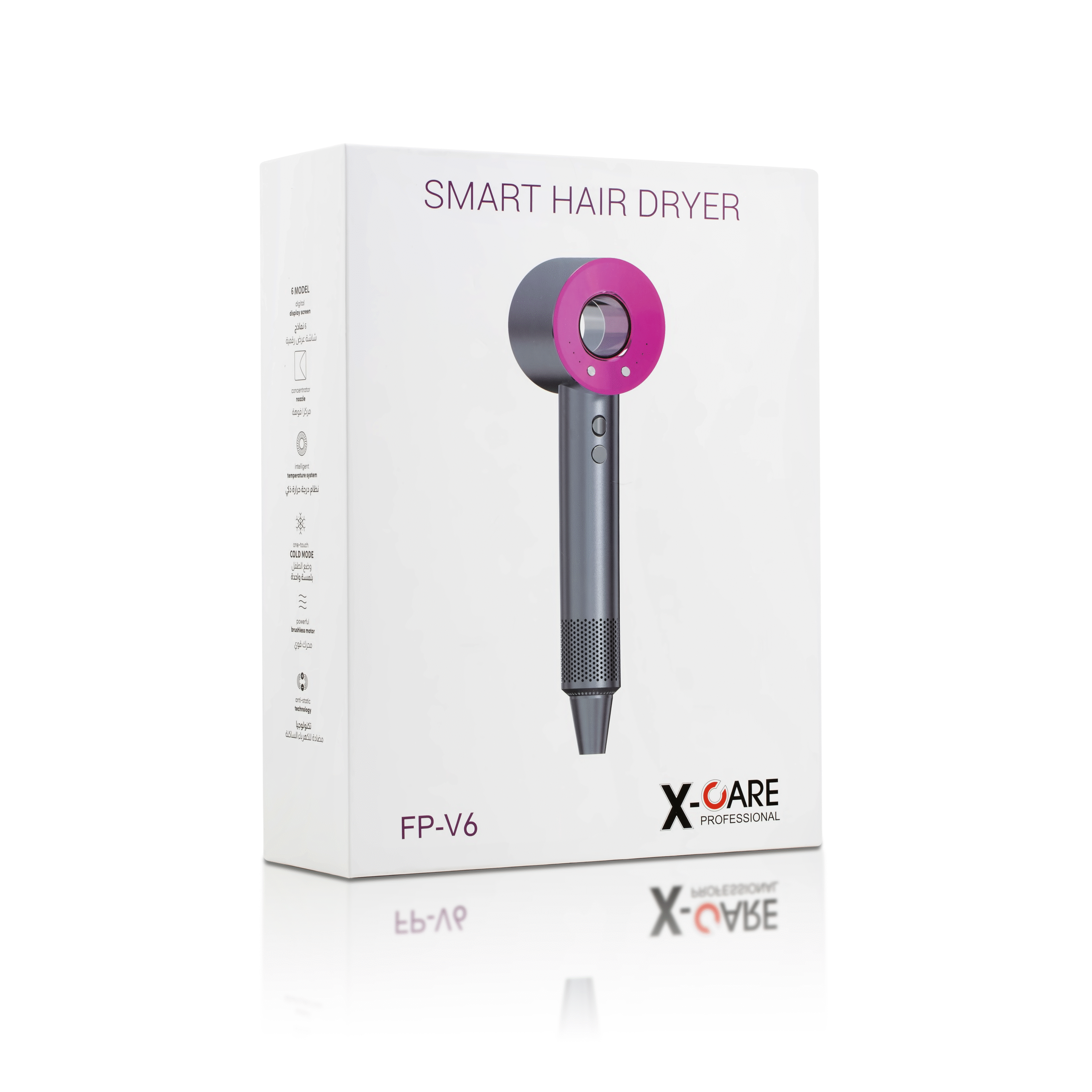 احصلي على تجربة تجفيف سريعة وآمنة مع مجفف الشعر X CARE FP-V6 بتقنية المحرك بدون فرش لضمان أداء قوي ولمعان طبيعي لشعرك.