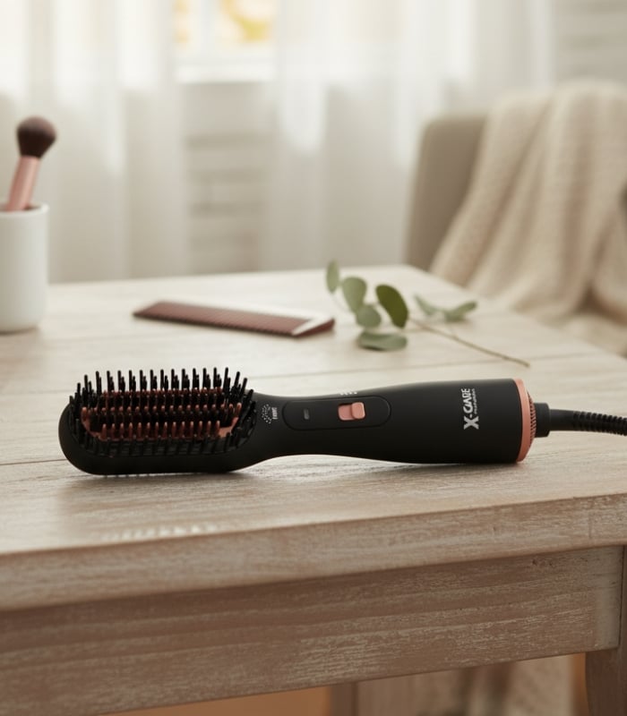 مشط شعر حراري من إكس كير FP2270، يجمع بين تقنية الأيونات والتسخين السريع ليوفر لكِ شعرًا أملسًا ولامعًا بسهولة.