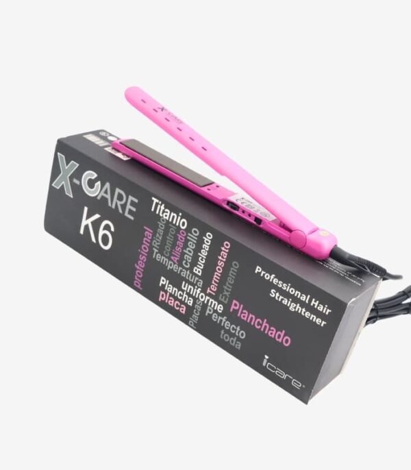 احصلي على شعر أملس ولامع بسرعة مع مكواة سيراميك بروفيشنال K6 من X-Care، بتقنية التيتانيوم لتوزيع الحرارة بالتساوي وفرد الشعر بدون تلف.