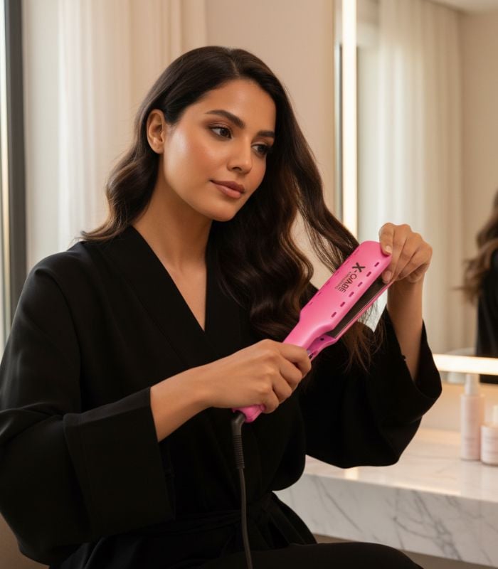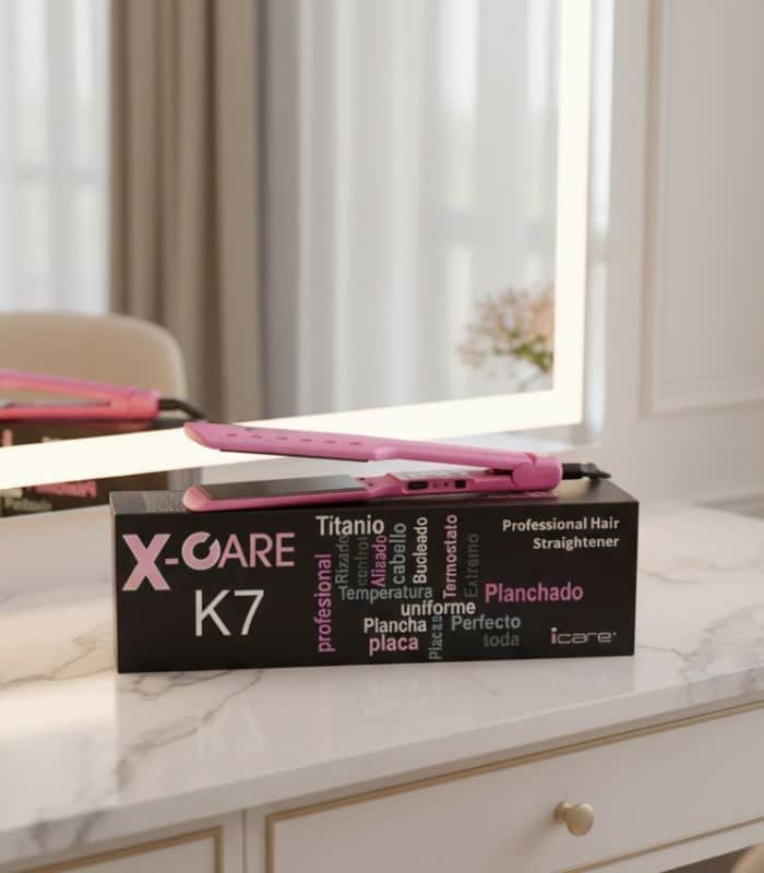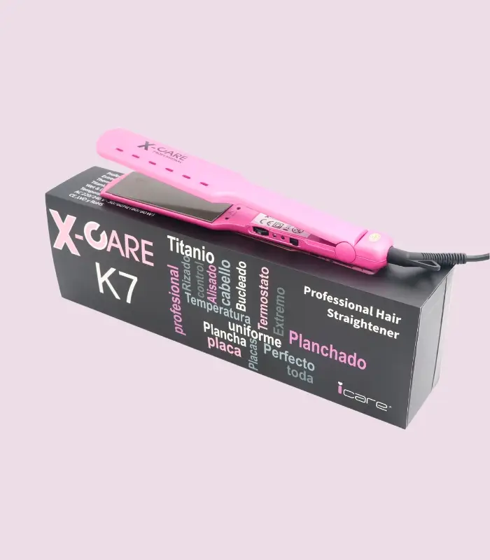 احصلي على شعر أملس ولامع مع مكواة السيراميك بروفيشنال K7 من إكس كير، بتقنية التيتانيوم لحرارة متوازنة ونتائج احترافية في كل استخدام.