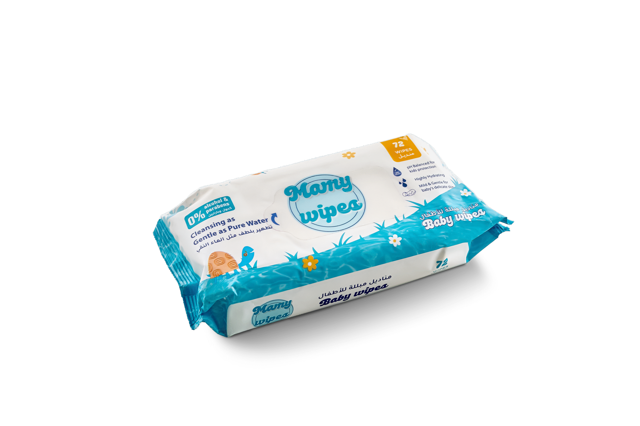 مناديل مبللة للأطفال من MAMY تنظف وترطب بلطف، مصنوعة بتركيبة آمنة خالية من الكحول والعطور، مناسبة للبشرة الحساسة منذ اليوم الأول.